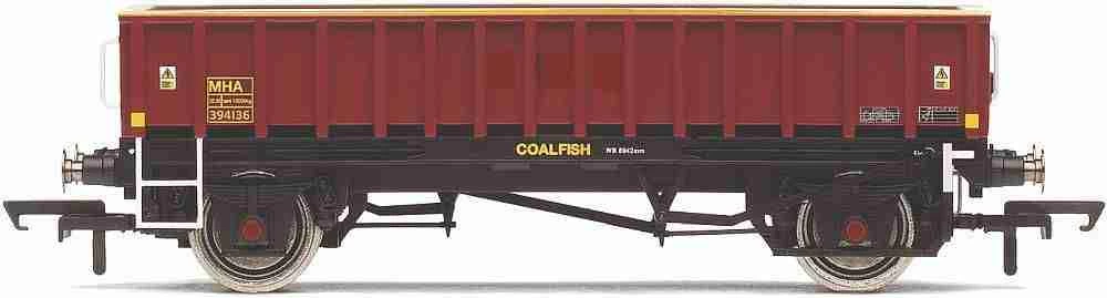The MHA ballast/spoil box wagons were built using redundant HAA underframes by RFS(E) Doncaster in 1997. An initial order for 250 was extended several times until eventually over 1,150 wagons were converted using two distinct body styles. Early examples wore the fish-kind name “Coalfish” and some are still in use today with DB. This particular ‘Coalfish’ model features custom ‘painted over’ livery.