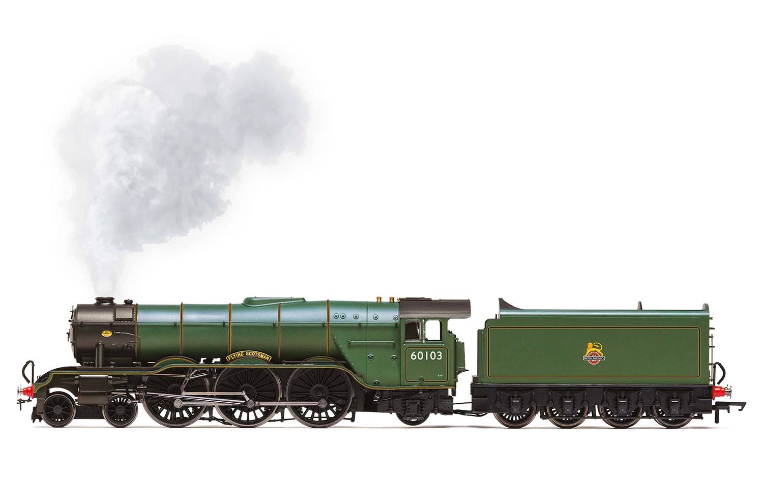 In 1946 ‘Flying Scotsman’ was rebuilt to A3 Class specification and emerged in January 1947 having been renumbered by LNER as No. 103. In December 1948 ‘Flying Scotsman’ was once again renumbered as a result of the nationalisation of the railways, becoming No. 60103. In 1954 the locomotive was converted to left hand drive and painted into BR Green, also known as Brunswick Green.