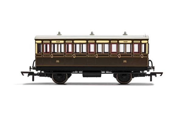 GWR 3rd Class 5 Door 4 wheel coach. Gas lamps + step boards 1889