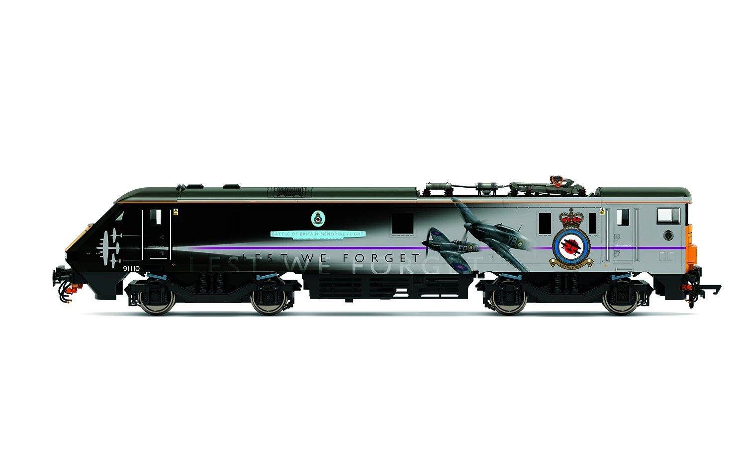 In 2012, then operated by East Coast, the locomotive received a special Battle of Britain Memorial Flight livery which was kept in Virgin Trains East Coast operation. 91110 is also known for being the holder of the British speed record for an individual locomotive, achieving 161.7mph on the 17th September 1989.