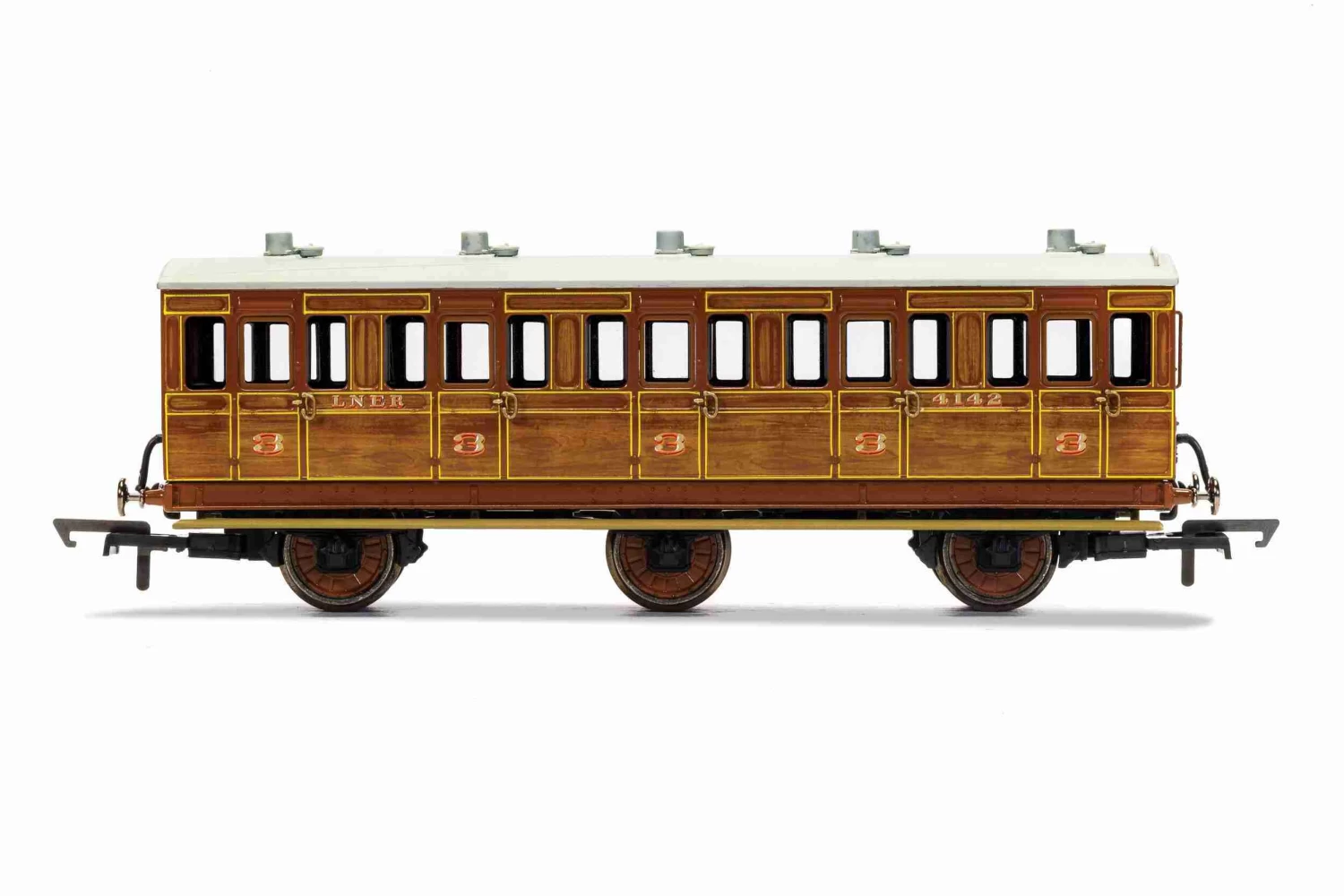 Hornby R40128A LNER, 6 Wheel Coach, 3rd Class, Fitted Lights, 4142 – Era 3