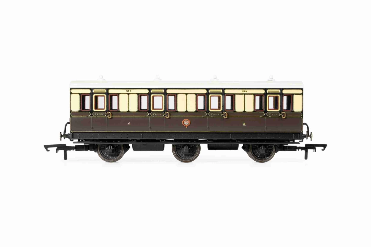 Hornby R40304 GWR, 6 Wheel Coach, 1st Class, 519 – Era 2/3