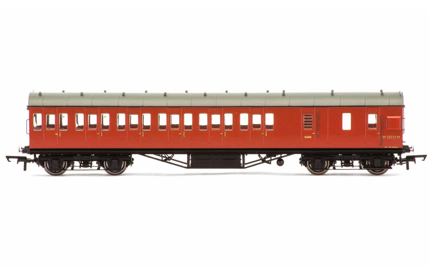 This is a Hornby R4801A OO Scale British Railways 57′ Stanier Non-Corridor Brake Third Class Coach #M20737M.